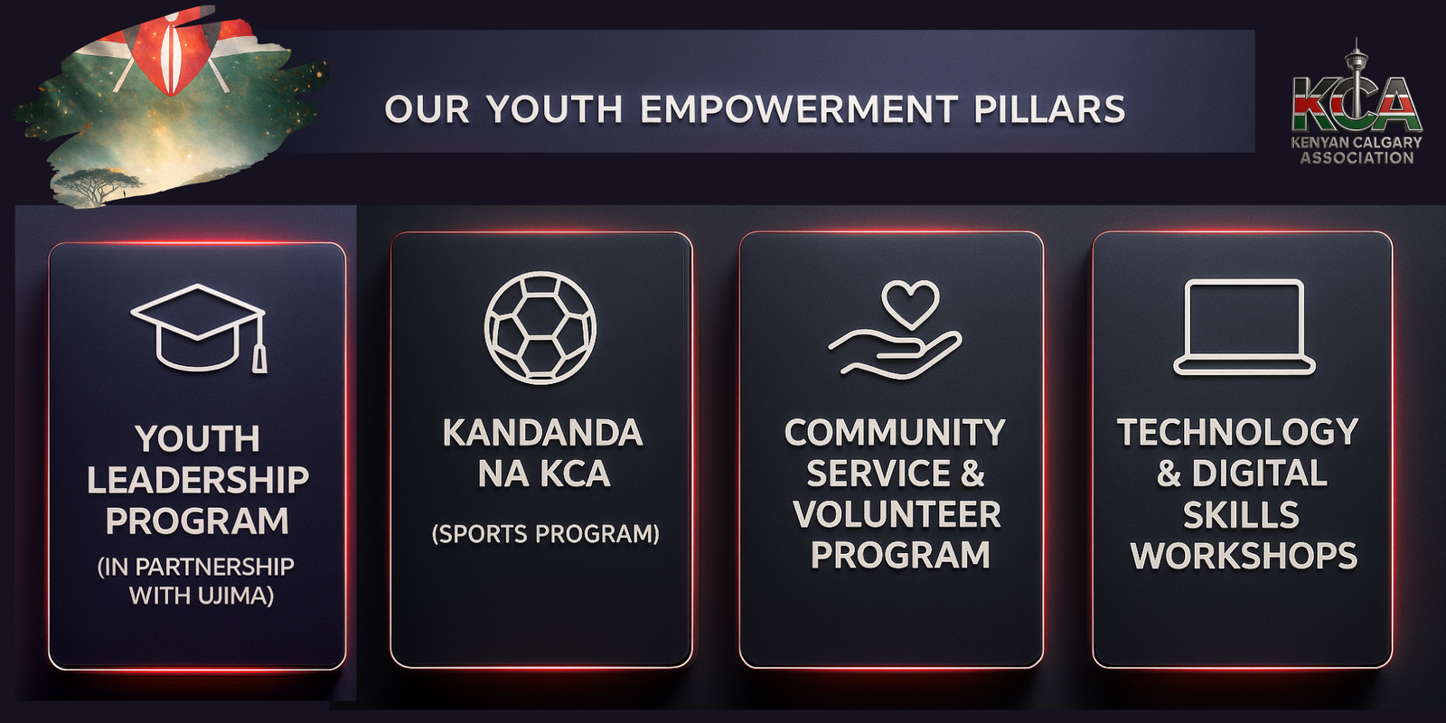 The Kenyan Calgary Association (KCA) believes that the strength of any community lies in the power, voice, and potential of its youth. Our Youth Empowerment Program is built to inspire confidence, provide opportunities, and shape young people into leaders who can influence both the Kenyan community and the greater Calgary society.